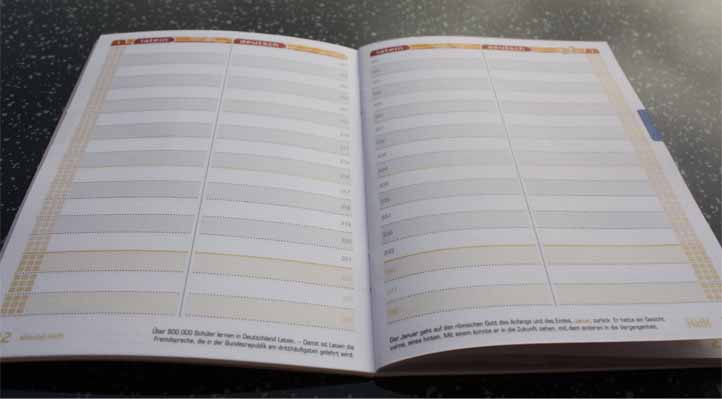 Ich predige meinen Nachhilfeschülern ja immer wieder, dass das führen eines Vokabelhefts sehr wichtig ist, auch wenn die meisten Schüler glauben, dass das reine Zeitverschwendung ist. Doch ich bin wirklich davon überzeugt, dass man sich Vokabeln schneller und längerfristig einprägt, wenn man die Vokabeln abschreibt und mehrfach wiederholt. (Ich persönlich führe heute noch ein Vokabelheft, in das ich alle englischen Worte eintrage, die mir noch nicht geläufig sind.) Mit diesen Häfften kann ich die Jungs (ja, die meisten meiner Englisch Nachhilfe Schüler sind Jungs) aber vielleicht davon überzeugen, dass es auch Spaß machen kann Vokabeln zu lernen. Denn bei diesen Heften handelt es sich nicht um die typischen 08/15 Vokabelhefte, die man so kennt, (linierte Seiten und ein Strich in der Mitte) sondern es handelt sich hier um wahre Fundgruben zum Thema Fremdsprachen. Die Vokabel-Häffte warten mit einem Lernkontrollziel, Grammatik-Übersicht, wissenswerten und kuriosen Länderinfos, Lerntipps und Dummfug auf. Es sind wirklich 64 durchdachte Seiten, die dabei helfen eine Sprache zu erlernen.